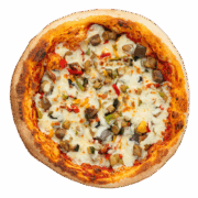 Base tomate provençale et origan + mozzarella, merguez, poivrons
